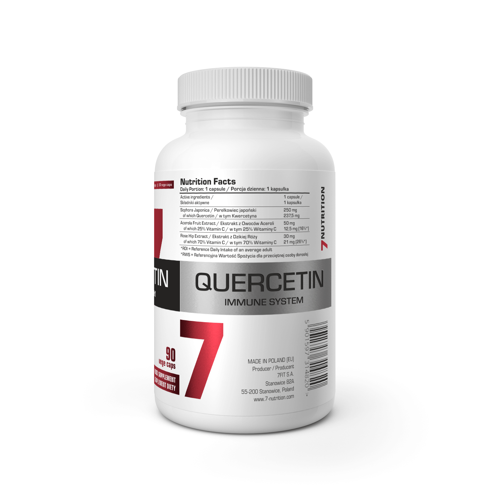 7Nutrition Quercetin to suplement diety oparty na starannie dobranej formule, która łączy kwercetynę (quercetin) z wyciągami roślinnymi pochodzącymi z owoców aceroli oraz dzikiej róży. Produkt został zaprojektowany dla osób, które szukają naturalnych składników roślinnych o silnych właściwościach antyoksydacyjnych, wspierających codzienną dietę i styl życia.